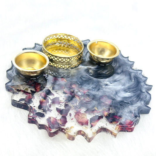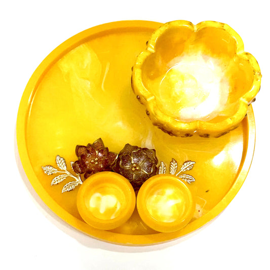 Handmade Resin Thali for Haldi Ceremony 8.5"- with Bowl