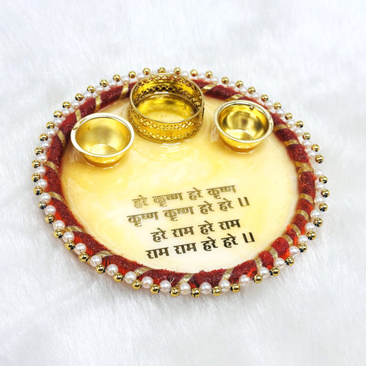 Hare Krishna Hare Krishna | Pooja/Aarti Resin Thali With Border