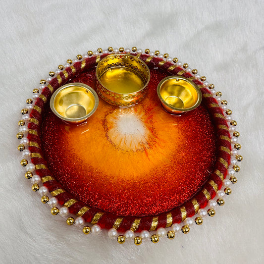 Pooja/Aarti Resin Thali | Orange | Zik Zag
