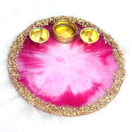 Pooja/Aarti Resin Thali | Pink | Golden Borders