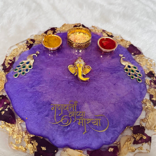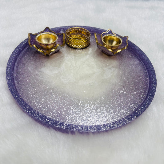 Pooja/Aarti Resin Thali | Purple | Shimmer