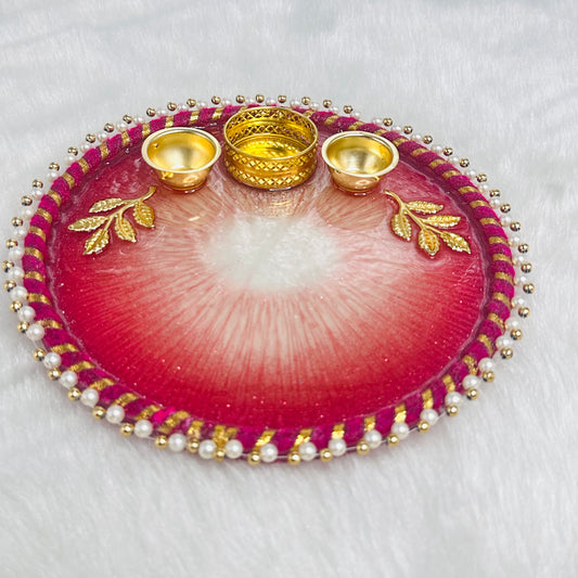 Pooja/Aarti Resin Thali | Pink | Zik Zag