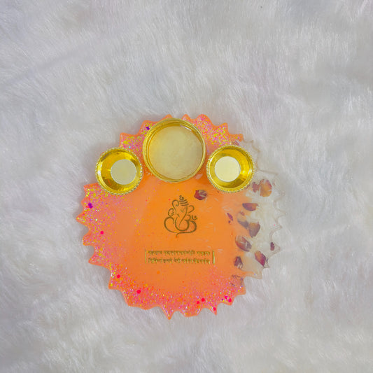 Pooja/Aarti Resin Thali I Peach I ZikZag